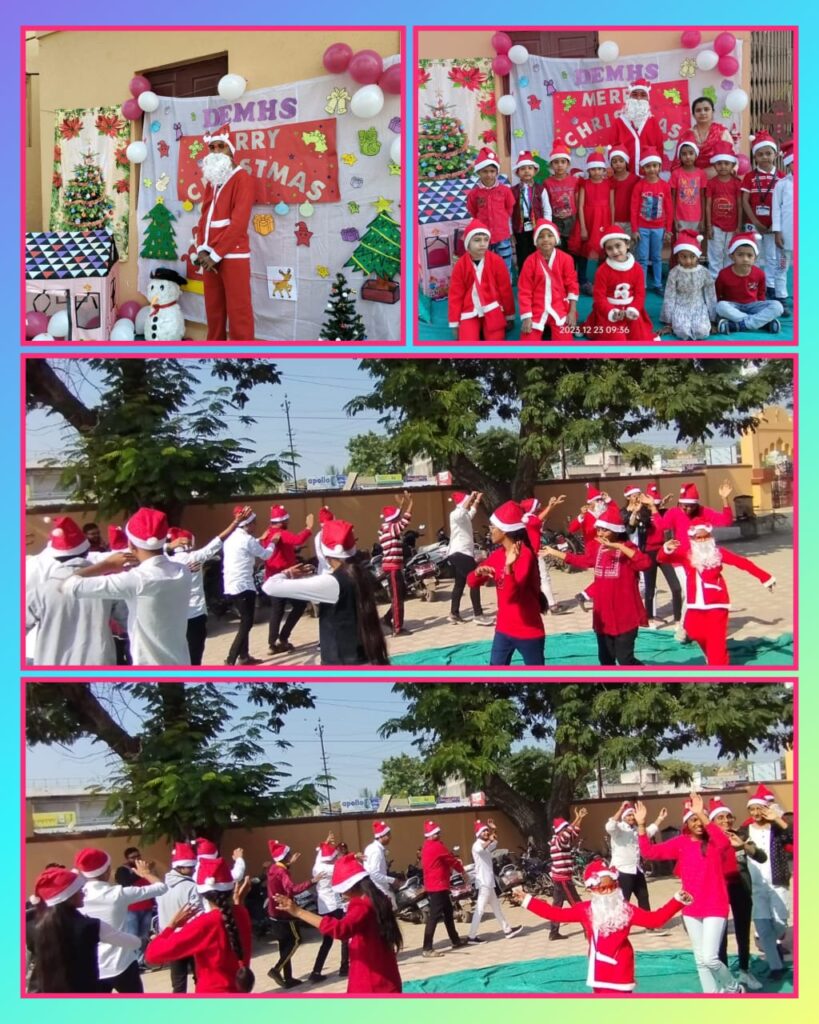 Dhandhuka English Medium High School celebrated Christmas on 23/12/ 2023. The school was beautifully decorated with Christmas trees, wreaths, and balloons. The students wore red and white dresses, and some came as Santa Clause.They sang Christmas Carrols to convey the message of love and generosity.