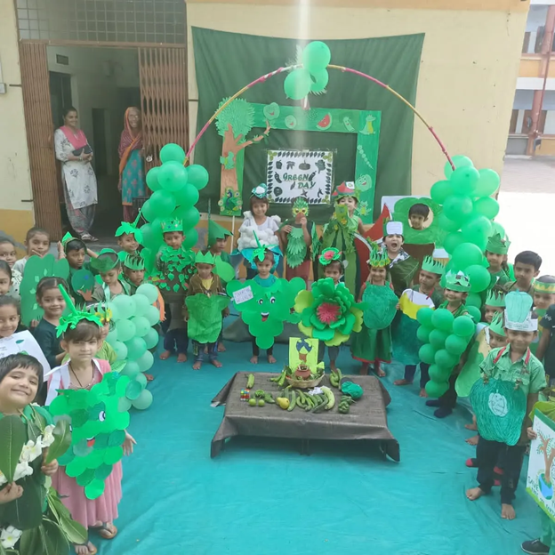 The Colour Green represents prosperity and fertility. Green Day was celebrated by the Pre-Primary kids of DEMHS The aim was to inspire young minds to learn about climate change and how it relates to their environment. All the students came dressed up in the different shades of green. The campus became vibrant with beautiful green background. Students identified different green vegetables and other green objects. Green Day is a fun way to learn serious lessons about our Environment!